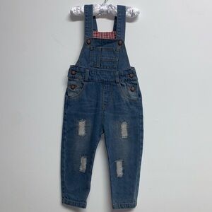 Toddler Bib Overalls Size 12M Distressed Boy Girl Unisex Buttons Pockets