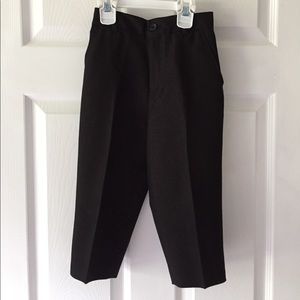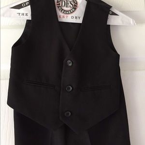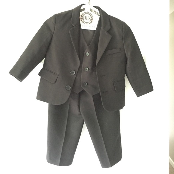3-piece black toddler suit. Worn only once when my 4-yr old was the ring bearer in a wedding. Great quality. Has been professionally cleaned. Pants have an elastic waistband.