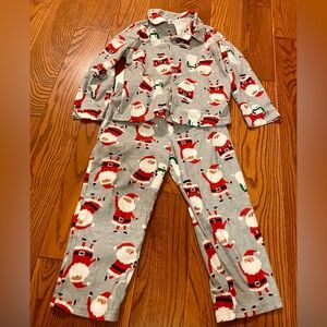 Adorable fleece pajama bottoms with animal prints and Santa set. Soft and comfortable for kids.