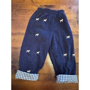 Toddler Boy Navy Blue Pull On Plants Corduroy Dog Embroidery Reversible 3T/4T
