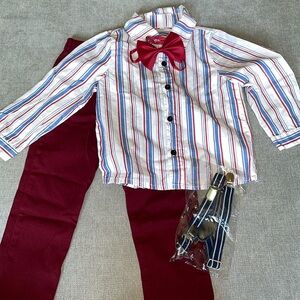 Toddler Boy’s Button Down With Pants Bowtie And Suspenders