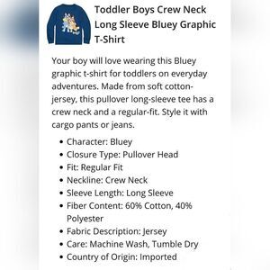 Toddler Boys Crew Neck Long Sleeve Bluey Graphic T-Shirt
