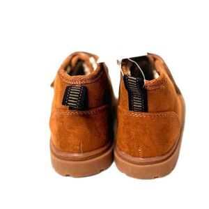 Toddler Boys New With Tags Magnus Boots from Cat & Jack. These ankle boots feature a faux-suede upper in a versatile cognac shade, contrasted with a white faux-shearling insole and lining with a chukka style design that gives them a trendy look. The adjustable strap closure ensures a secure and comfortable custom fit while the cushioned and comfortable features make them perfect for all-day wear. Size 6 New With Tags.