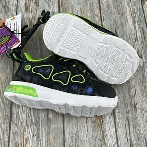 Features: Black upper with lime green accents, lining and outsole airbag; light-up design