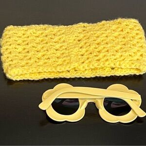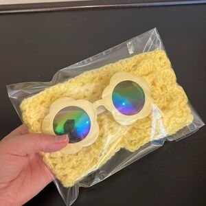 Toddler Bundle flower power sunnies and crochet yellow headband(New/handcrochet)