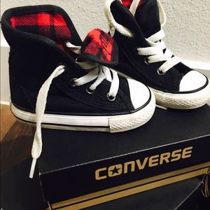 Red, black plaid Converse