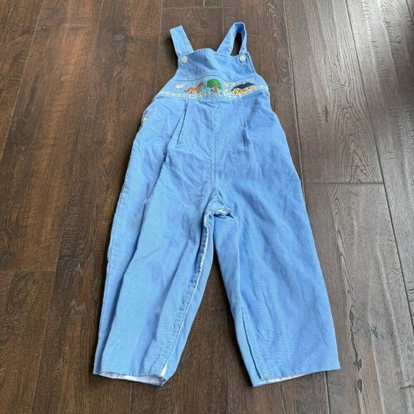 Toddler Corduroy Embroidered Farm Theme Overalls Light Blue Cotton Size 4T