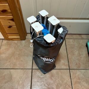 Folding cot for toddler napp and sleeping. Only used twice. Comes withh handy storage/carrying bag. Very compact and practical for travel.