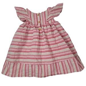 Toddler Dress Size 2T Genuine Kids OshKosh Khaki Pink Stripes Lined Cap Sleeves