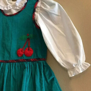 Vintage 90’s Toddler Girl Dress and Shirt Cherries Corduroy Ruffles size 3T