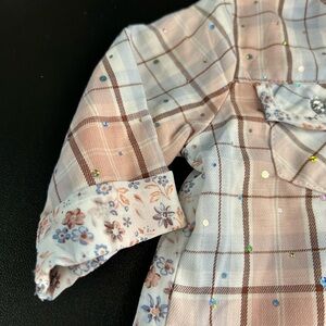 The first is from Little lass it’s a button front sequin plaid and floral top high low waist