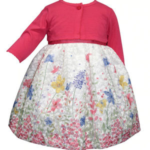 Dress to impress. Your little girl is sure to look adorable in this floral print dress and cardigan.