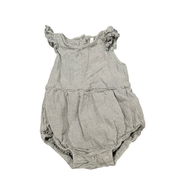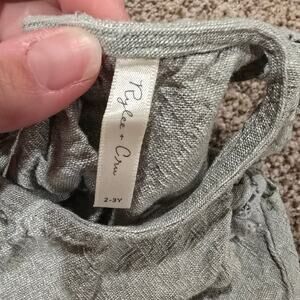 Excellent condition, toddler girl's Rylee + Cru green, linen blend, one piece romper/outfit. This snaps at the legs and buttons in the back.