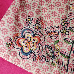 -1 Cap Sleeve Floral Embroidered Hot Pink and White Blouse Top