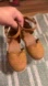 Stylish brown kids shoes featuring charming floral cutouts. Perfect for any occasion. Gently worn.