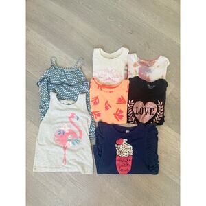 Bundle of 5 short sleeve graphic tees and 2 tank tops from brands Carters, Cat & Jack, Children’s Place and Epic Threads.