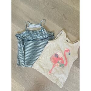 Good used condition; dinosaur top has some light staining on front near neck. Flamingo tank top has some staining on back bow detail. See all photos.