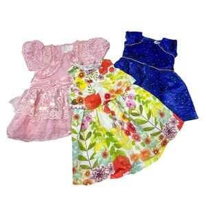 Adorable party dresses for toddler girls in pink lace with silky underskirt, purple with silky and mesh underskirt, and a floral sundress in white, yellow, green & orange with silky underskirt. Size 2T. Proudly brought to you by Cherokee, Cat & Jack, and Growing Up.