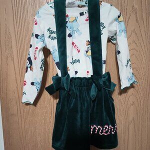 2pc Bluey Christmas top and skirtall set in green
