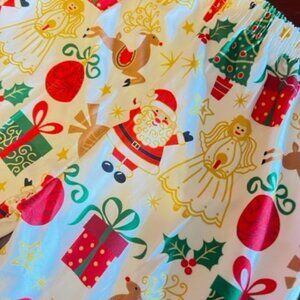 This vibrant Christmas outfit for toddler girls combines a red ruffle top and festive print pants. Designed with comfort and style in mind, it offers a cheerful holiday look.