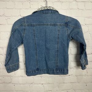 Toddler Girls Leopard Print Collar Denim Jean Jacket Size M, GUC