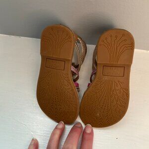 Pink, gold, and silver sparkly gladiator sandals. Never been worn