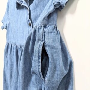 Old Navy toddler girls size 5T charming blue denim, short sleeve dress with folding collar, button down front closure, inset side pockets and gathered waist. Perfect for casual outings and playdates. 100% Cotton. Gently Loved. Great Condition.