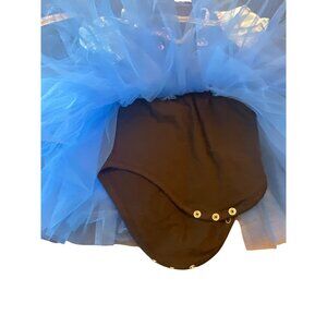 This charming toddler dress combines comfort and style with a blue tulle skirt and an embellished bodice. The dress features a snap closure for easy wear, making it suitable for dressing up. The elegant design and quality material ensure that your little one stands out in any setting.