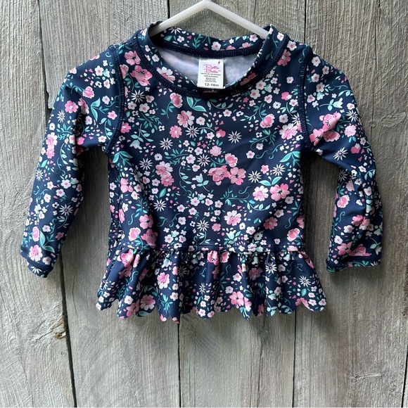 Toddler Girls Ruffle Butts Brand Moonlight Meadow Peplum Rash Guard Size 12-18 M