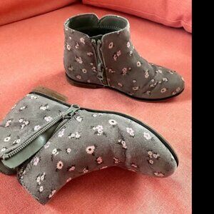 Little Girls Suede Floral Boots Cat & Jack Size 12 Grey Suede Ankle Length Boot