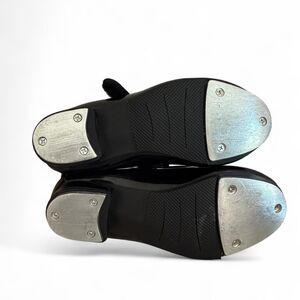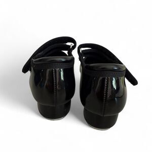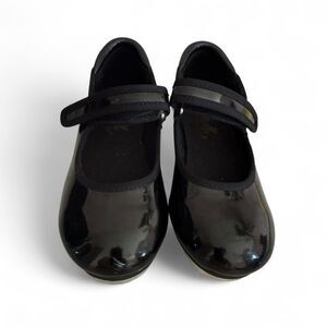 Toddler girls’ black patent leather Mary Jane tap shoes with 1" heel. Size 10 (toddler/little kids). Small white scuff on one toe, but in otherwise excellent used condition. Smoke free, pet friendly home. #tapdance #dancewear #kidsdancewear