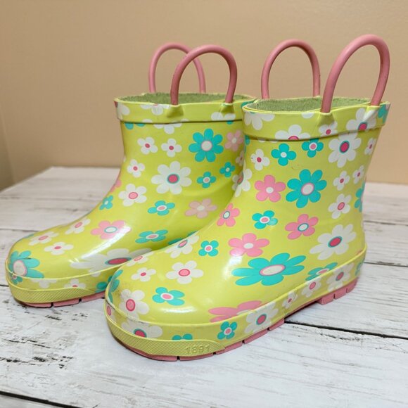 Toddler Girl's Western Chief Flower Power Shorty Rain Boots Size 10 Yellow EUC