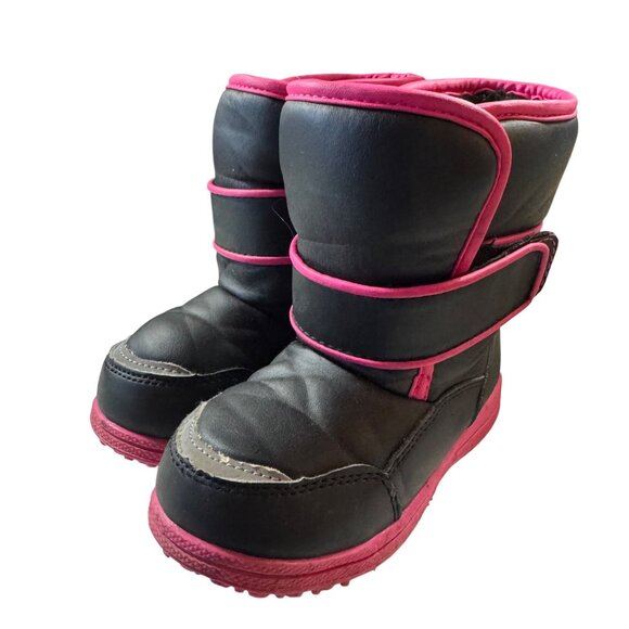 Toddler Girls Winter Snow Boots Size 9 Black & Pink Hook and Loop Closures
