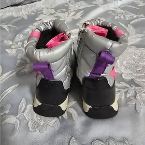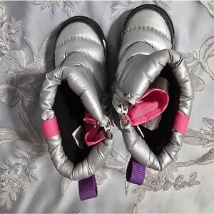Toddler Girls size 7 Puffy Snow Boots Silver Pink Wonder Nation Zipper