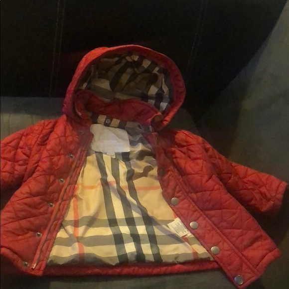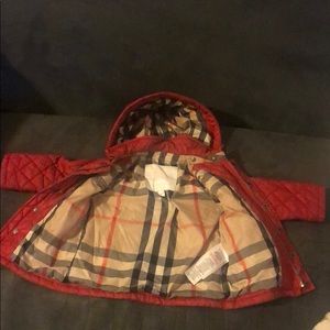 Red toddler Burberry jacket with snap on hoodie