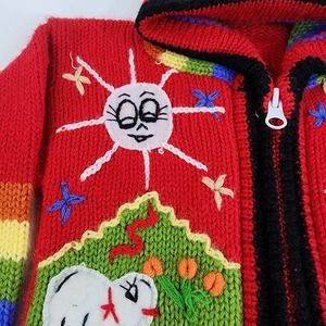 Kids Knit Embroidered Red Cardigan Zip up Hoodie