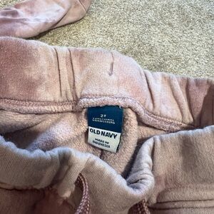 Cute and cozy matching set complete with sweat pants and sweat shirt! There’s some wear in the pants from paint or something but other than that in great condition!