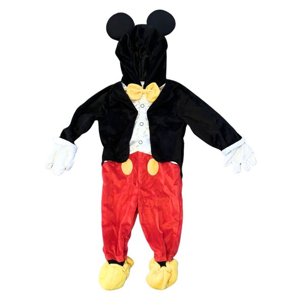This is the costume you need for that upcoming Disney Cruise or trip to Disney World or Disneyland! This Mickey Mouse costume was worn once and is in fabulous condition with no stains or tears. The head has roomy elastic around the face, and the ears are a solid foam construction that won't bend or sag. The outfit has a Velcro opening from the neck to the waist. The white gloves and yellow shoe coverings are attached to this outfit. It's soft and breathable and ready for the next adventure!