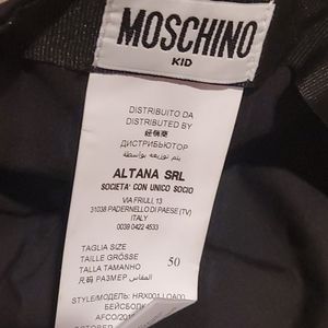 Never Worn!!!! Black and white toddler Moschino cap with adjustable strap in back. Fits a 1 - 2 year olds head!!!