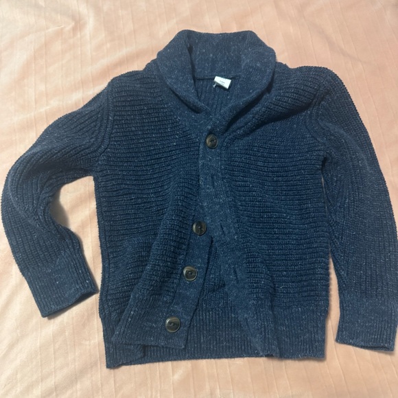Cozy cardigan with shawl collar. Button-up front. Ideal for layering.