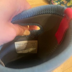 Toddler girl bogs. One small tear in fabric seam. Does not affect the effectiveness of boot.
