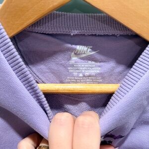 Adorable purple Nike set, skirt bottom with attached shorts, and sweatshirt top. Tags were removed to wash it, but it was never actually worn.