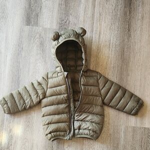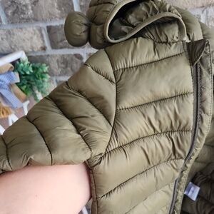 Toddler Olive Green Puffer Jacket with Bear Ears
