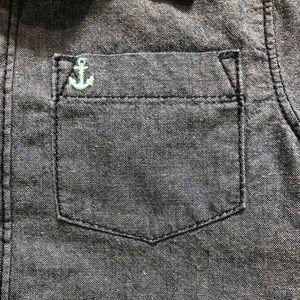 shirt: long sleeves, button down, functional chest pocket with anchor decal