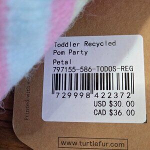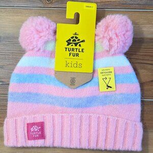 A double pom delight! Sweet and soothing colors in a soft and cozy recycled yarn will have your kiddo ready for endless days of winter play.