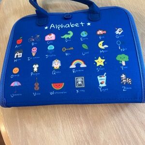 Toddler Pre School Activity Bundle, blue felt, activities include buckles, ties, buttons, zipper, shoe lace, clock, counting beads and puzzle. New, no tags