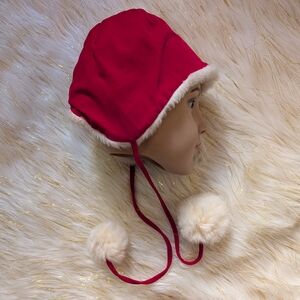 Toddler Red Velvet Winter Hat / Bonnet with Faux and Real Fur, Christmas Vintage