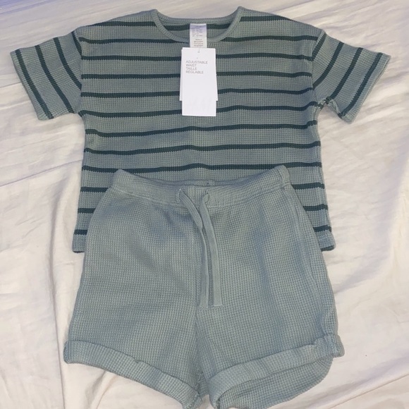 Toddler Ribbed Sea foam Striped Set