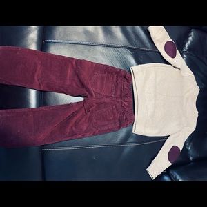 Boys maroon corduroy pants size 5 with sweatshirt size 5