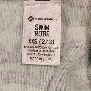 Toddler Size 2/3 Hooded Swim Bath Robe French Terry Belt NEW Members Mark